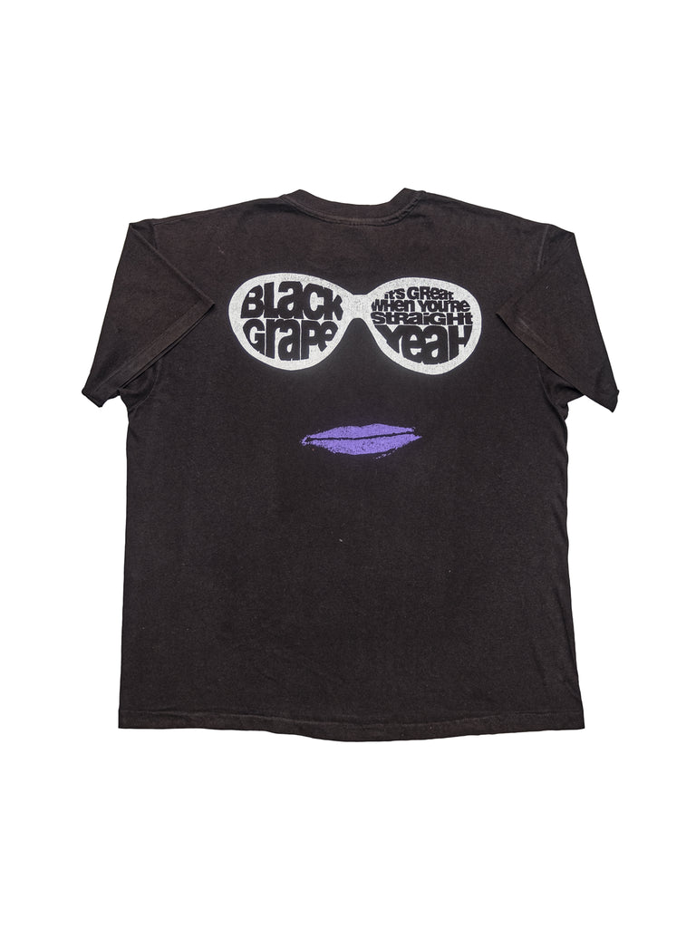 Great double sided print marking the debut album from Black Grape , fronted by Happy Mondays frontman Shaun Ryder. Killer graphics from Central Station Design, taken from the cover art. Perfect wear and fade on this mid 90s Hanes.