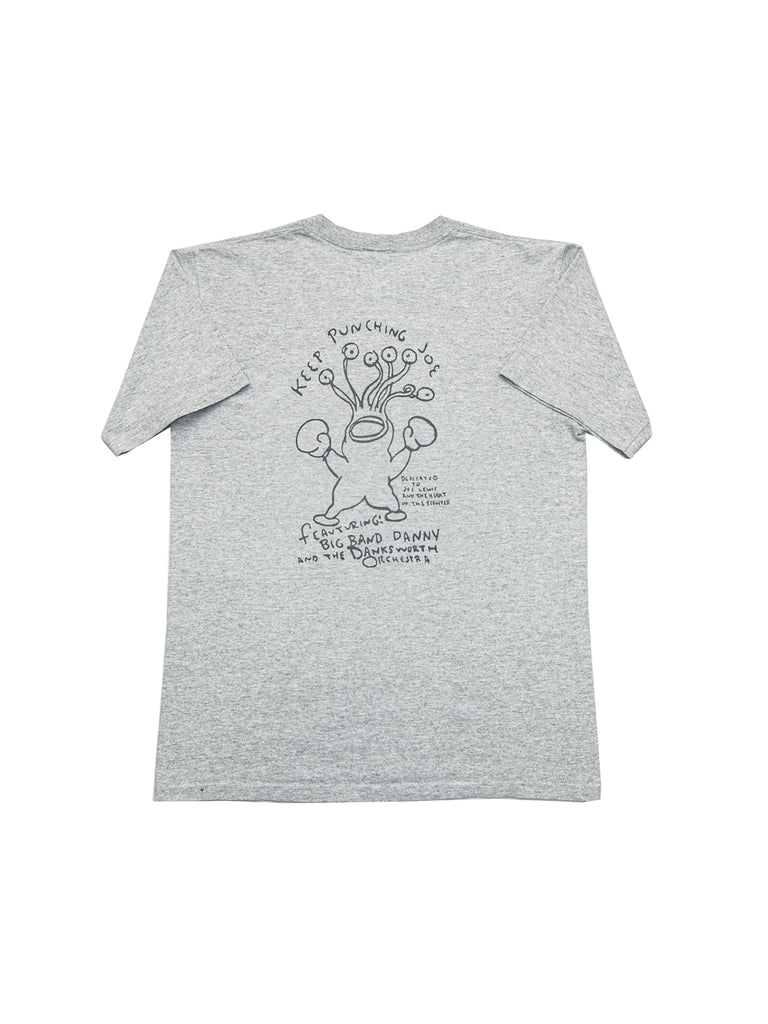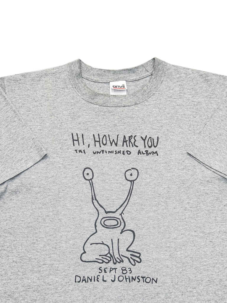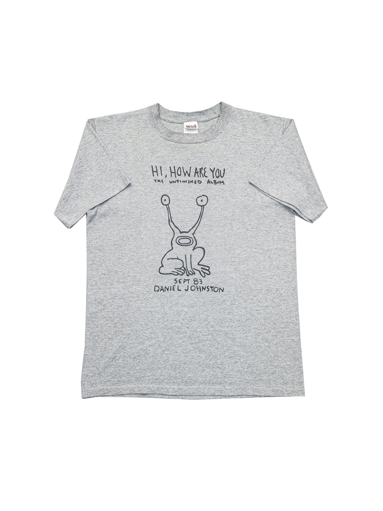 Iconic shirt featuring album artwork from Daniel Johnston’s cassette magnum opus, ‘Hi, How Are You’. Great back hit with his ‘Keep Punching Joe’ graphic , on this nicely worn 100% cotton Anvil shirt.