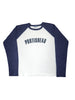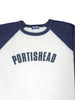 Classic baseball style raglan for Portishead. Simply featuring their iconic logo design across the chest on this nicely worn, and gently faded 100% cotton shirt.