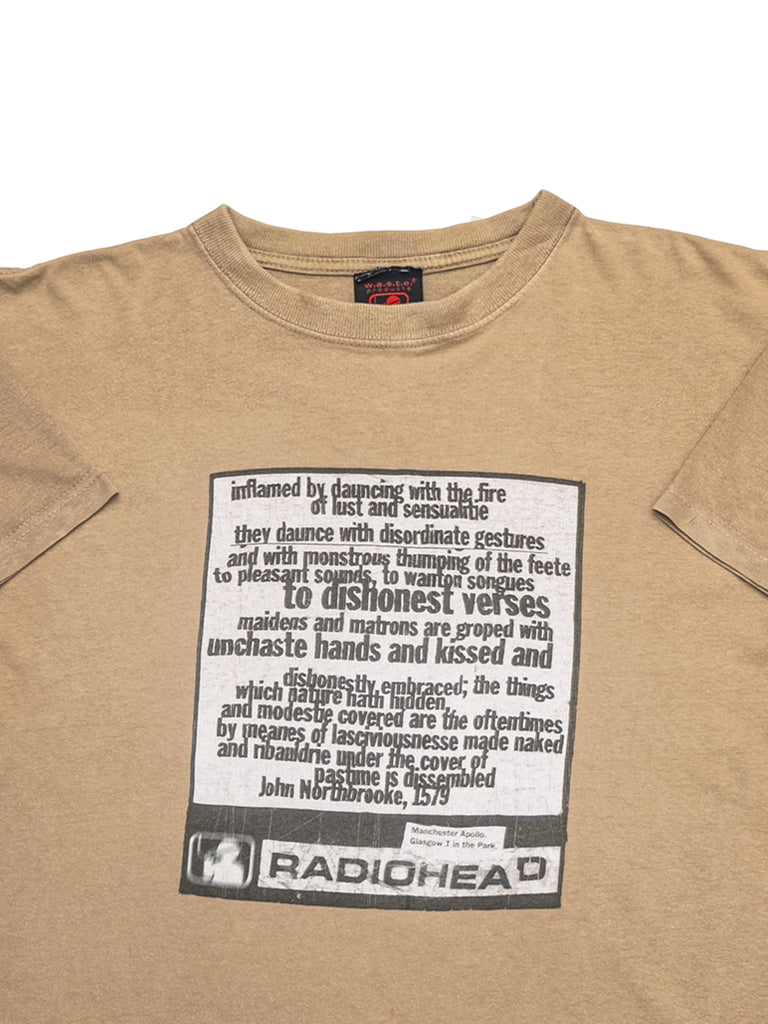 Awesome one featuring Stanley Donwood artwork & John Northbrooke verse, from just before the release of iconic album ‘OK Computer’. Gig details on the reverse of this perfectly worn and faded WASTE shirt.