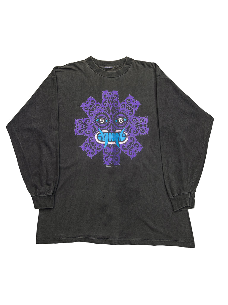 Awesome double sided print featuring RHCP’s iconic Aztec / tribal design from renowned Dutch tattoo artist Hank Schiffmacher. Perfect wear and fade throughout this super soft cotton early 90s shirt.