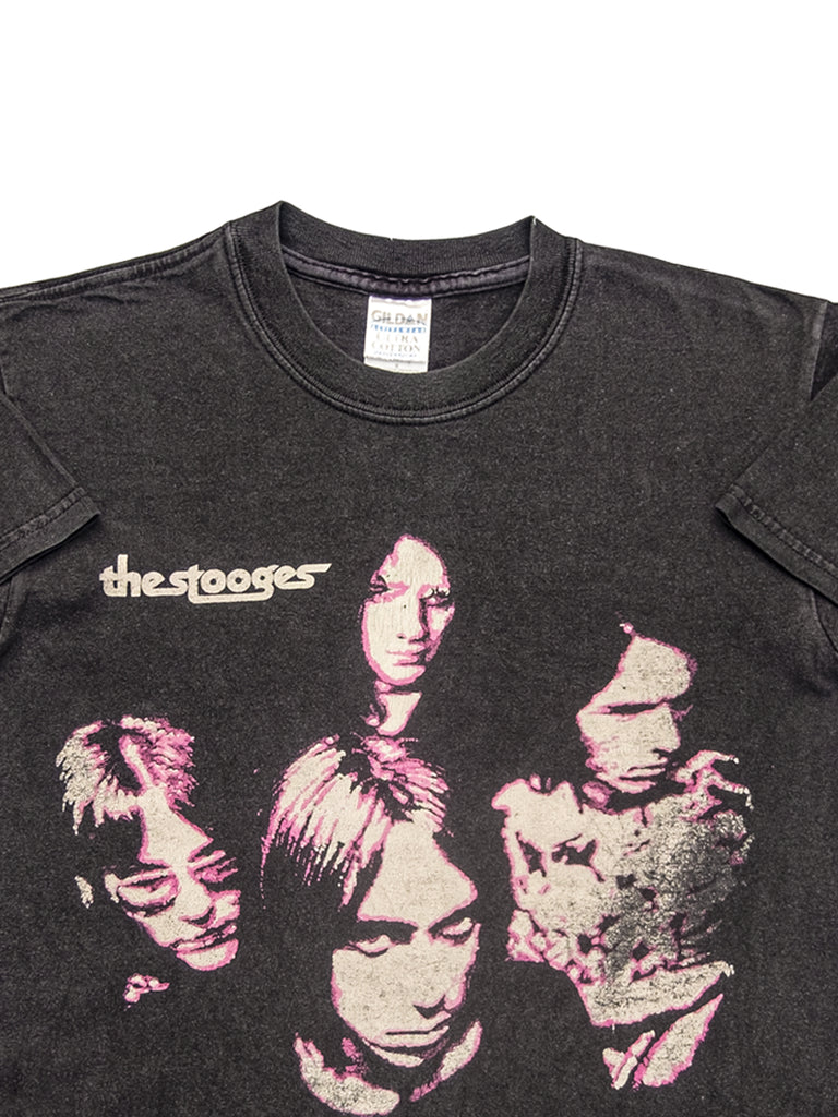 Really good one featuring a classic shot of The Stooges from the band’s heyday circa late 1960s. Perfect wear and fade on this Gildan Ultra 100% cotton shirt.