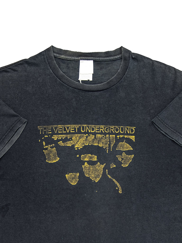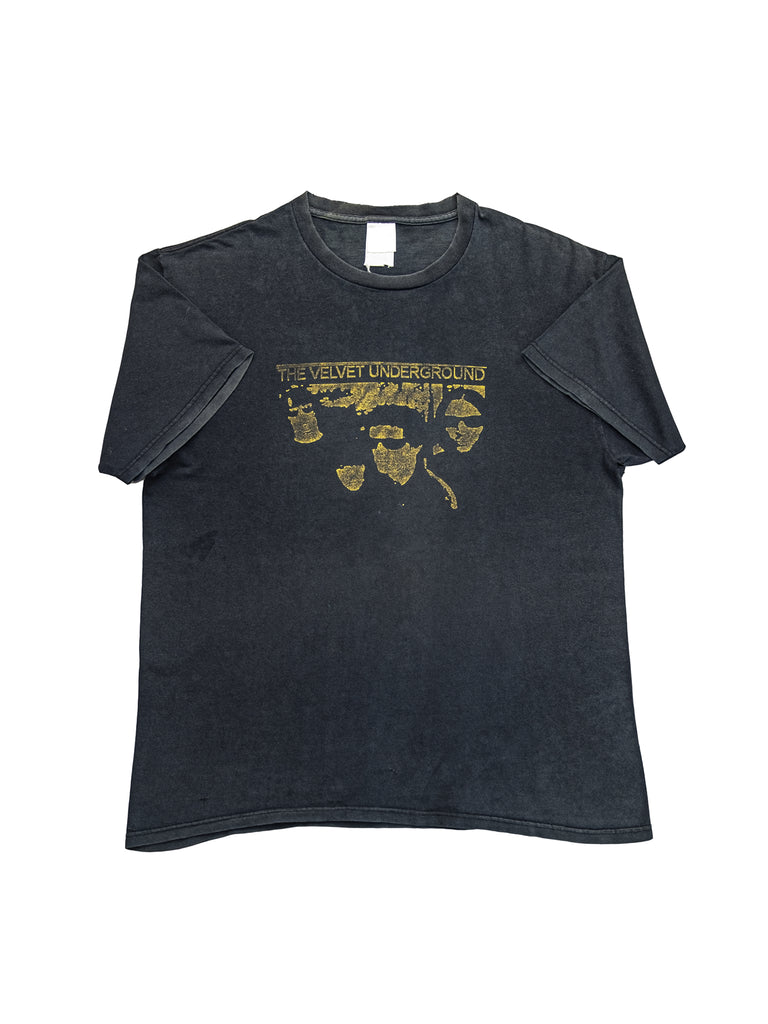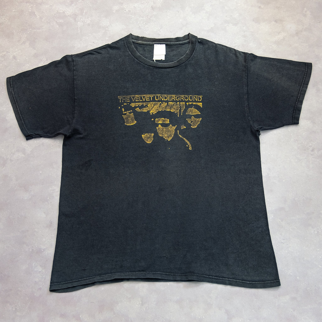 Great shirt featuring a classic image of The Velvet Underground in the mid 1960s. Really nice wear and fade throughout on this Fruit Of The Loom shirt.
