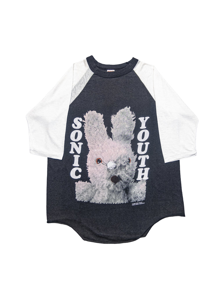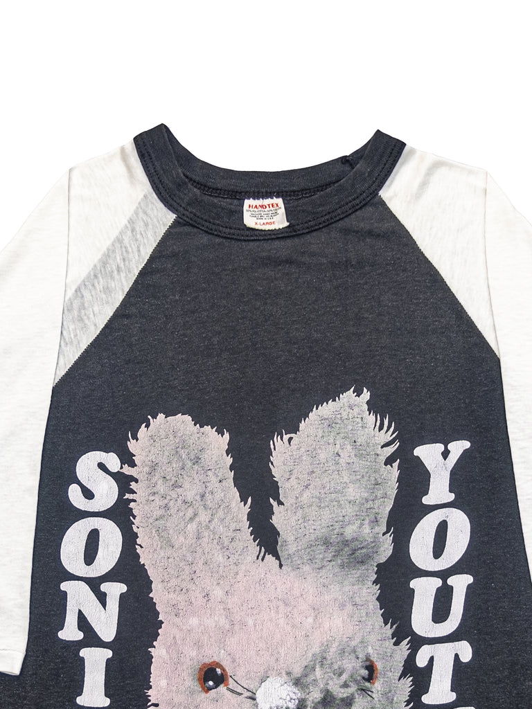 Incredible baseball style shirt with big print of Mike Kelly’s iconic bunny art. Featured on Sonic Youth’s 1992 album Dirty, with ‘gracias’ back-hit. Gently worn and still in great condition 100% cotton Handtex shirt.