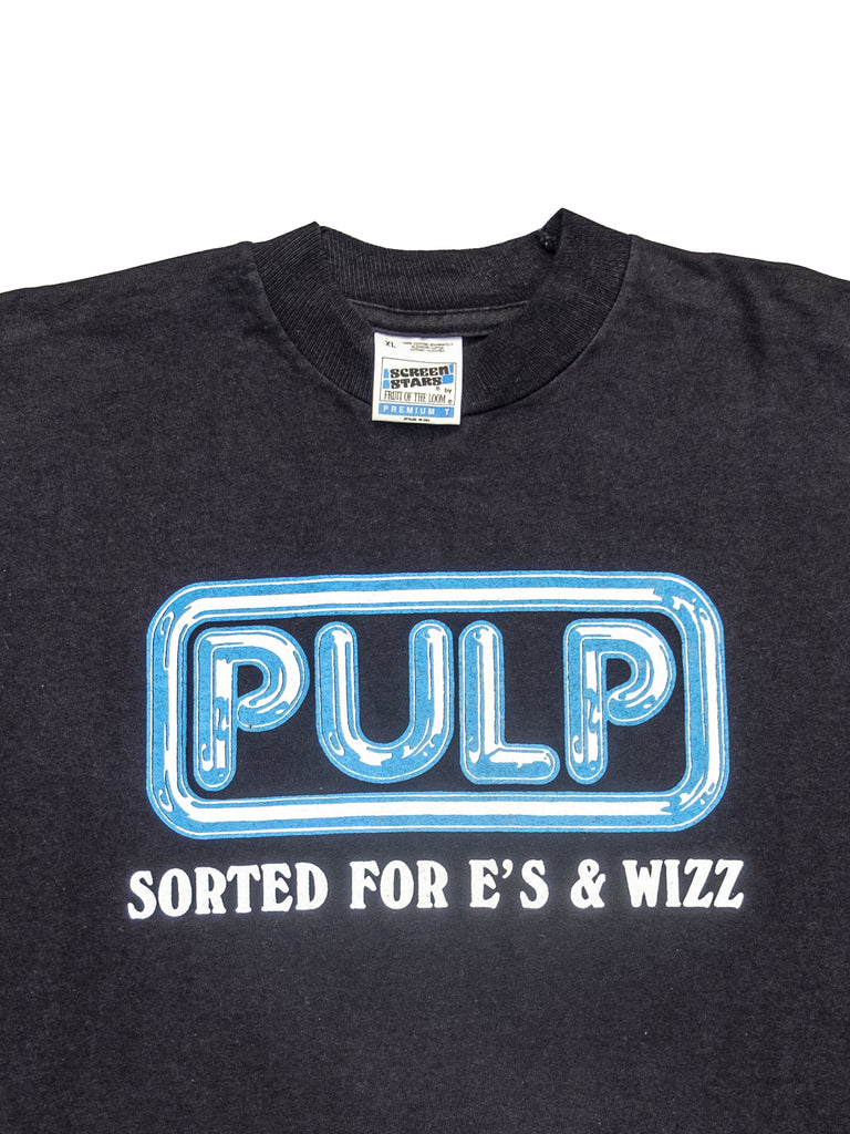Features the recognisable Different Class band logo on the front along with song title, and seriously good back print of the wizz wrap instructions from the single inlay. Nicely rounded off with logo arm details, on this Screen Stars shirt from the mid 90s.