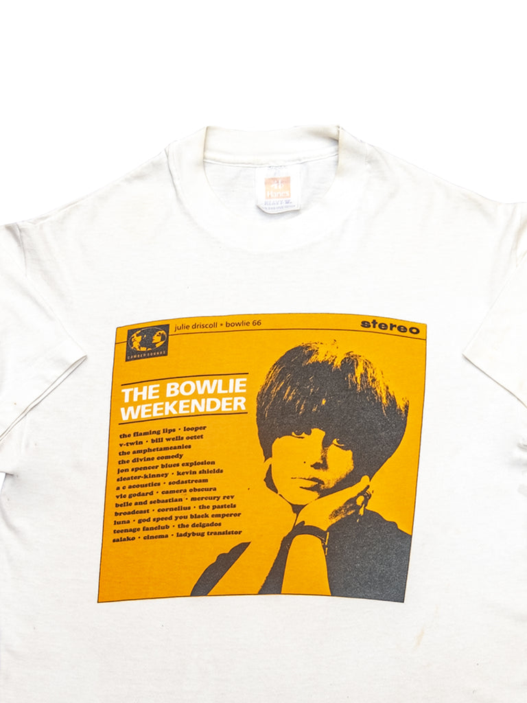 Good one from 1999 featuring classic Belle & Sebastian’s design for their legendary self curated Bowlie Weekender festival. Great condition throughout on this 100% cotton shirt