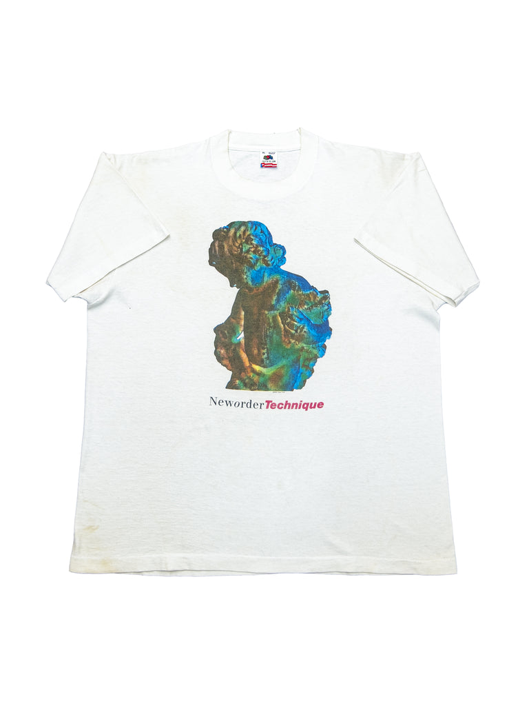 Brilliant one featuring the iconic cherub statue on the front, artwork described by Peter Saville as his neo-Warhol’esq take on the hedonistic early 90’s music scene. Nicely worn Fruit Of The Loom shirt.