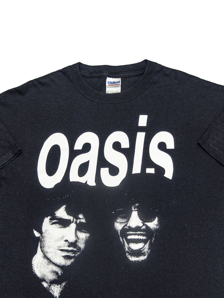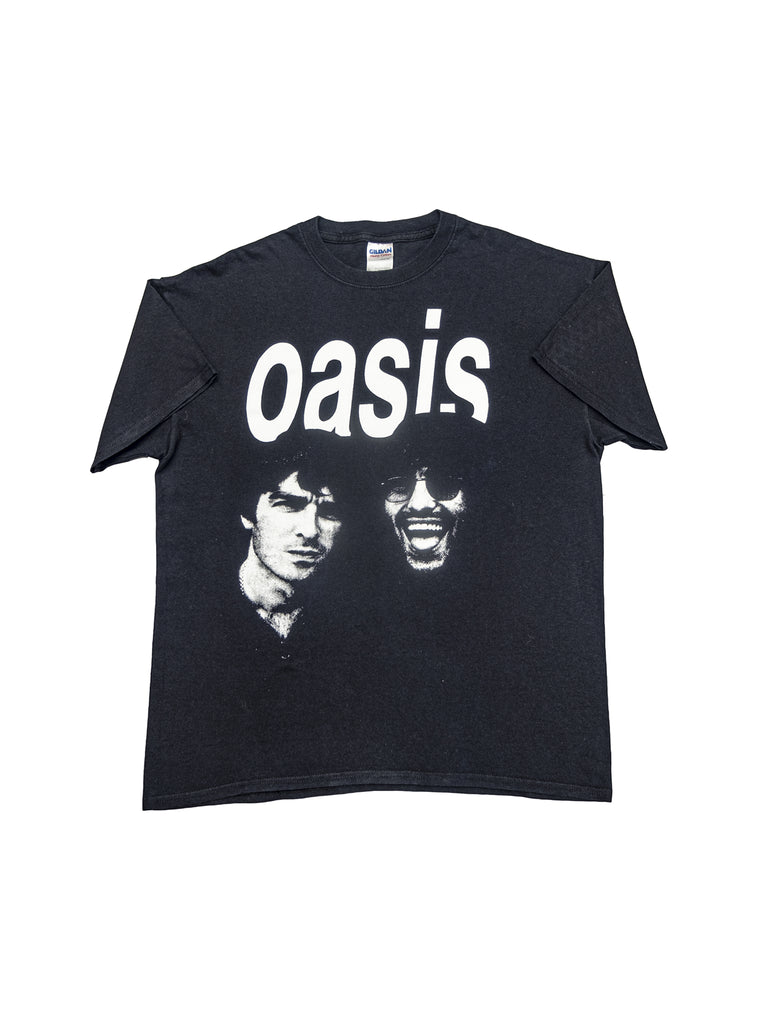 Really good one featuring a classic photo of Noel and Liam on the front from 1996, and band spellout on this gently worn Gildan shirt.