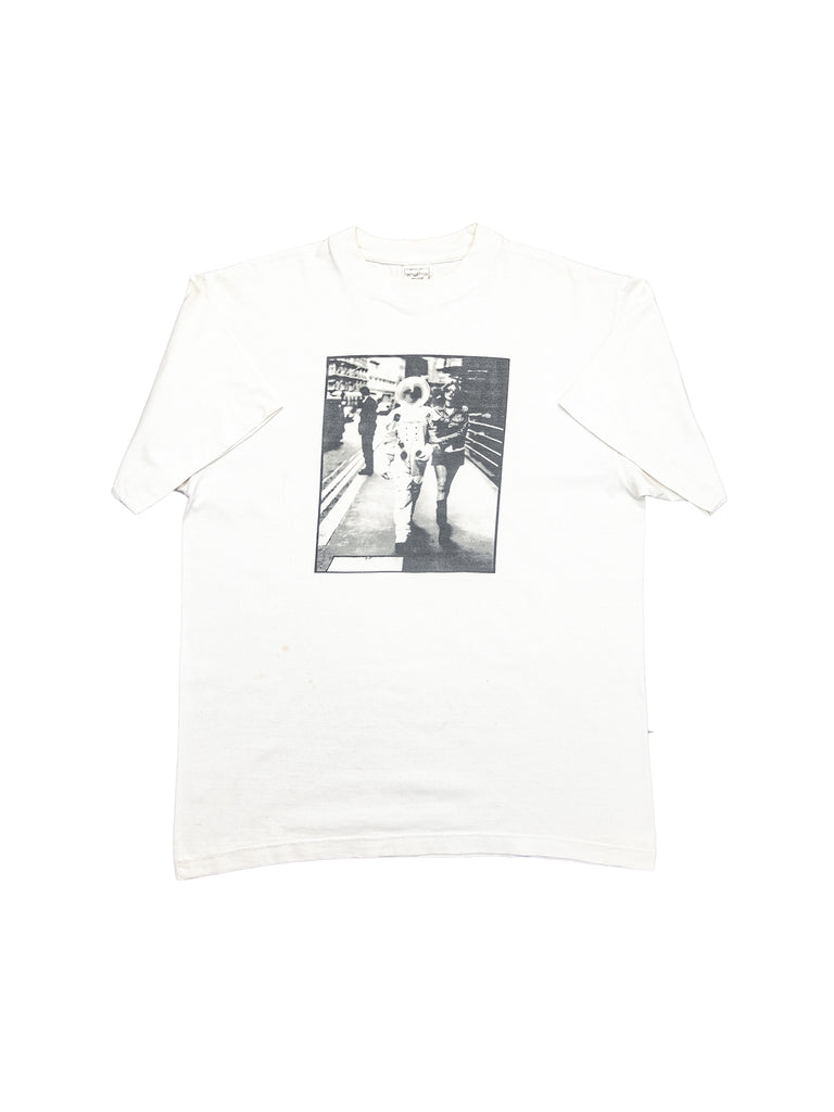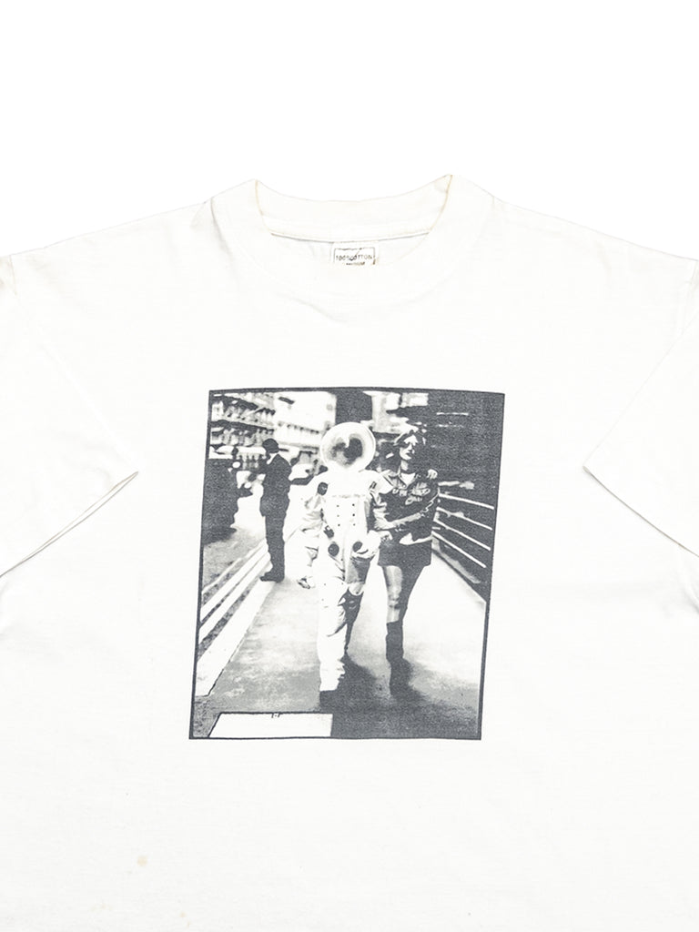 Good one for the release of second album ‘Pure Phase’. Features the iconic shot by Kevin Westenberg of Jason Pierce in a spaceman suit and Kate Radley walking the streets of London. Nicely worn and gently faded 100% cotton shirt.