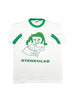 Brilliant shirt featuring their iconic ‘Cliff’ character across the front. Great condition throughout on this Far West ringer.